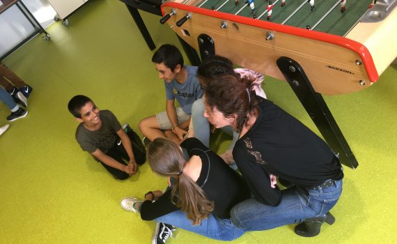 Une ambiance studieuse règne le vendredi soir au foyer. Concentrés, nos apprentis acteurs sont déjà très pros sous la houlette de Rosa Palomino, metteur en scène, et l’oeil bienveillant de Mme Réquer et M. Duzès.